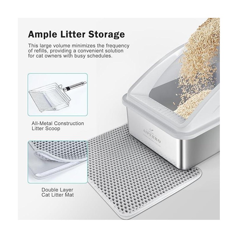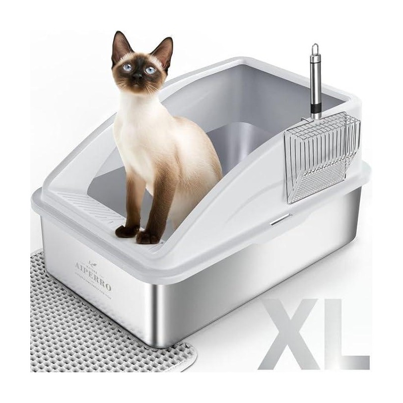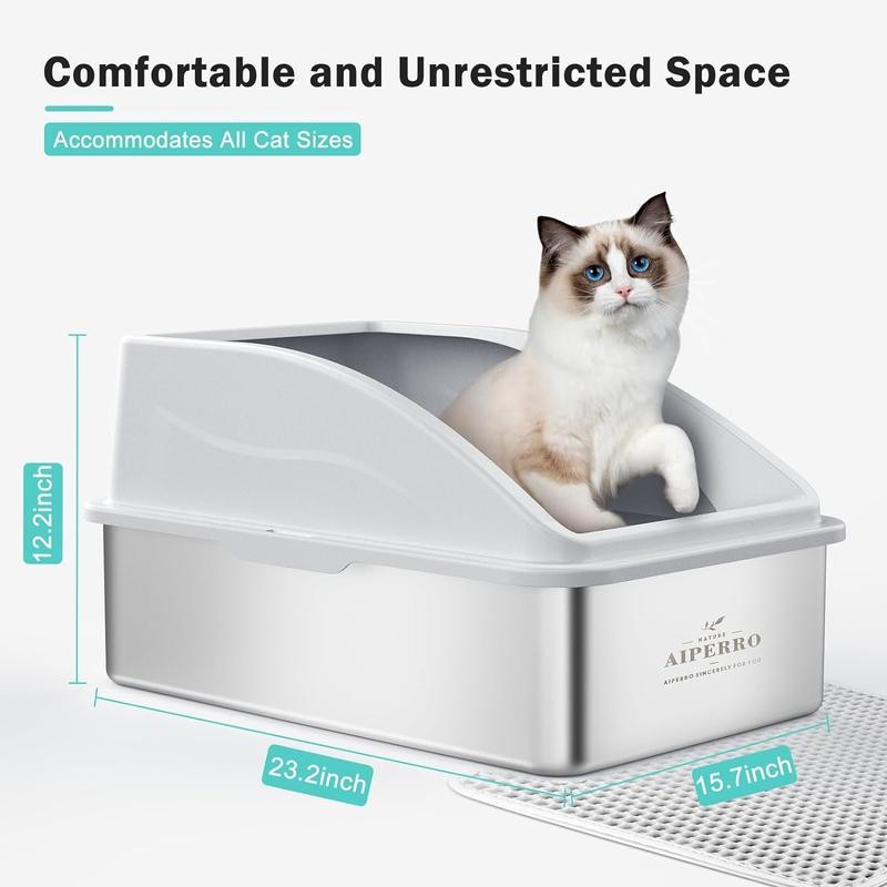 Stainless steel litter boxes resist sticking, offering a smooth surface for easy cleaning and maintenance.
