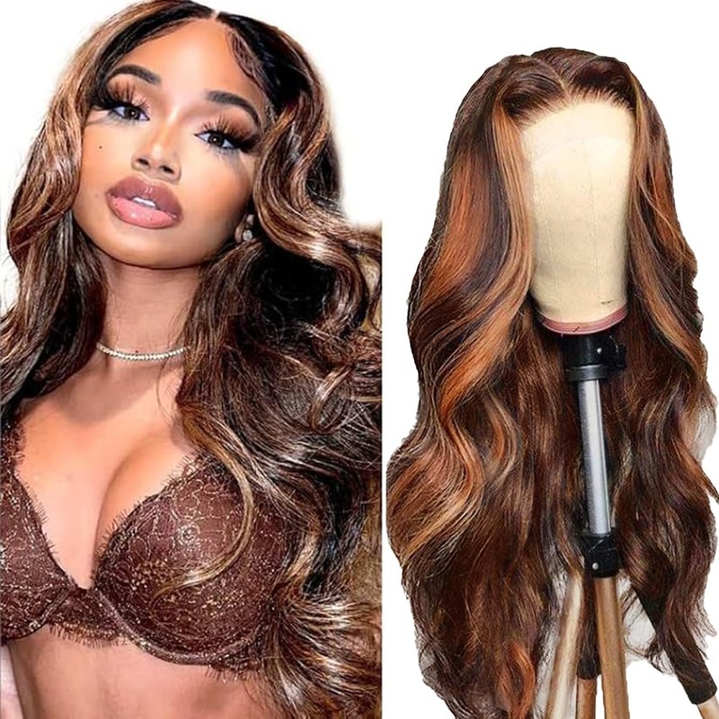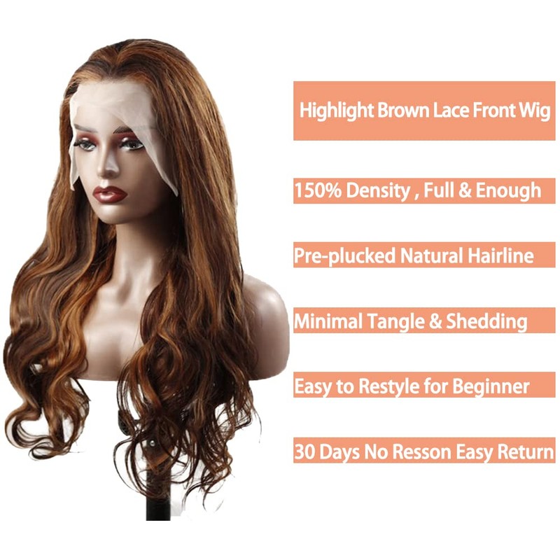AiPliantfis Human Hair Wig Glueless Wig Wear and Go Echthaar Perücke Damen Straight 13X6 Lace P4/27 Highlight Blonde Pre Plucked 150% Density Real Unprocessed Remy Hair 26 Zoll