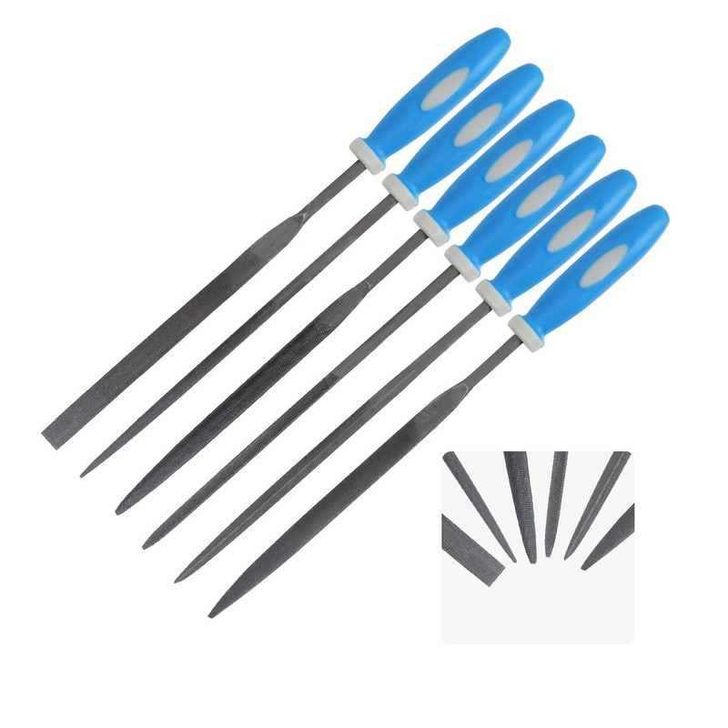 - NEEDLE FILE SET INCLUDES :Round file,Half-Round file,Flat file,Flat Warding file,Square file and Triangular Rasp file.