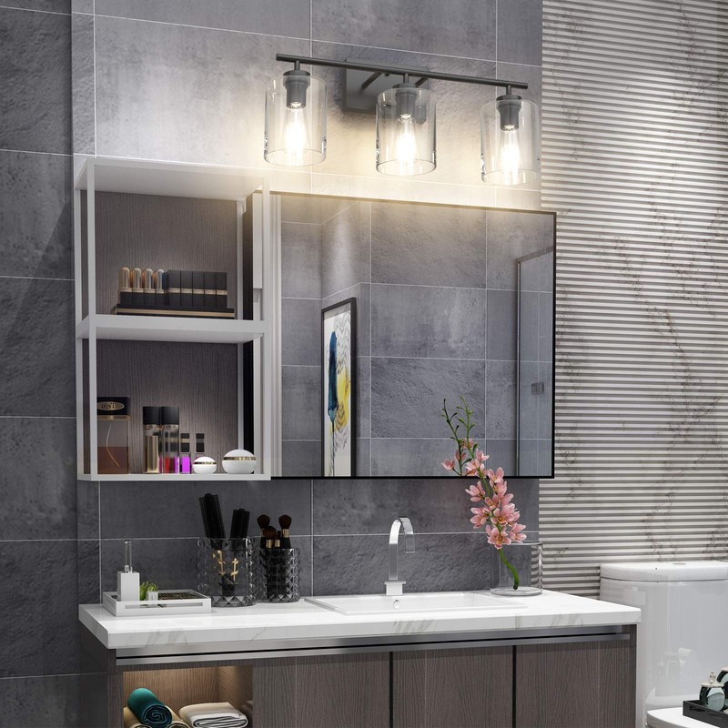 Aipsun 3 Lights Black Vanity Light Fixtures Over Mirror with Clear Glass Shades Industrial Wall Light Fixture for Bathroom(Exclude Bulb)