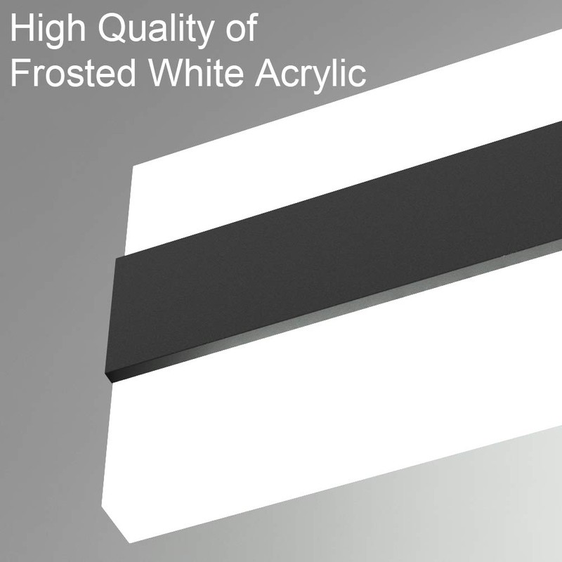 - ➣Modern and Minimalist: Up and Down Light creating a beautiful lighting effect.The simple and fashionable Bathroom Vanity Light fixtures design accords with the ultimate pursuit of modern people. The light comes from LED source and with a uniform light-emitting by going through the frosted acrylic.