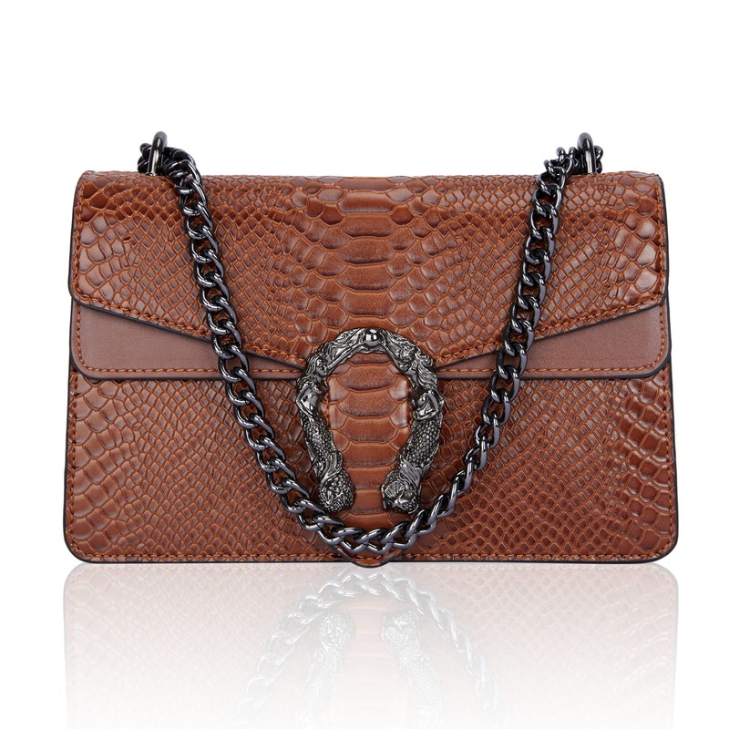Aiqudou Crossbody Bag Chain Purse for Women - Snake Print Evening Handbag Leather Shoulder Satchel Bag(NEW Brown)
