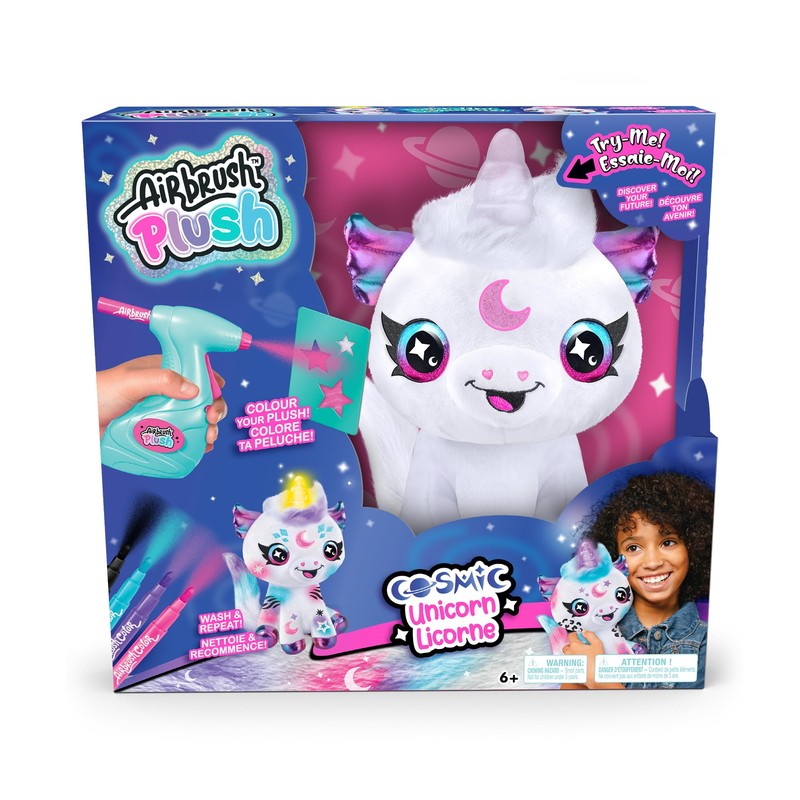 - Customizable Plush: Use the included airbrush tool and stencils to design and decorate your unicorn.