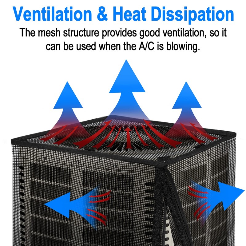 - Breathable Mesh AC Cover: The full mesh air conditioner cover provides good ventilation and heat dissipation, the mesh lets ac unit breath and run with the cover on. Mesh breathable design to prevent rain and snow from accumulating, suitable for all seasons.