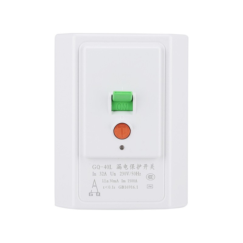 1、This leakage protection switch has the characteristics of beautiful appearance, high sensitivity, high temperature resistance, high safety, leakage protection and high voltage lightning protection 2、It can be installed on the single-phase power supply /50HZ line to prevent electric shock. The operation of the equipment is not greater than the rated current of the product 3、With over-voltage, over-current and short-circuit protection, it can prevent electrical damage caused by overcurrent. It is the most complete product in the current leakage protection switch market, and it is safer and more comprehensive than the traditi 4、It is suitable for wall switch boxes of office buildings, houses, shopping malls, entertainment places, construction sites, etc. It is especially suitable for household air conditioners of about 5KW and instant water heaters of about 8KW or similar purel 5、The installation method is simple and convenient, which can effectively prevent leakage hazard