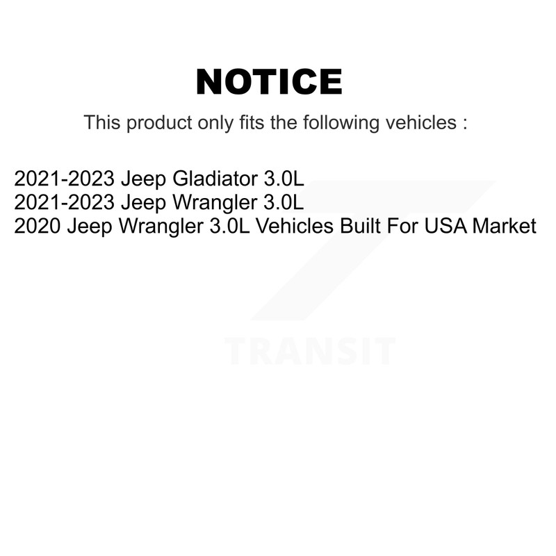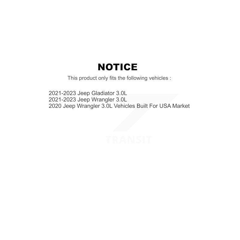 - Replacement for: 2021-2023 Jeep Gladiator, Wrangler (3.0L), 2020 Jeep Wrangler (3.0L Vehicles Built For USA Market)