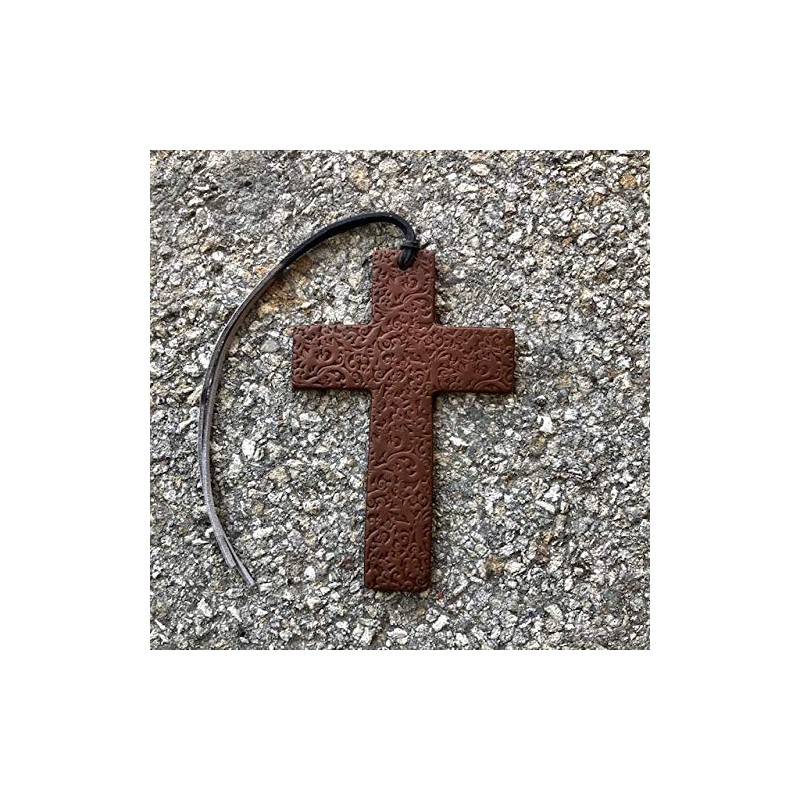 Air Flair | Leather Car Air Freshener | Cross | Scroll (Brown, Cherry Leather)