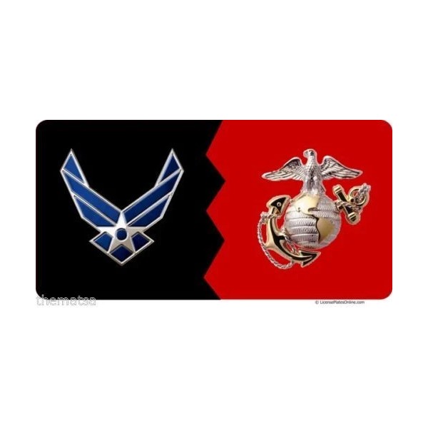 AIR FORCE AND MARINE CORPS A HOUSE DIVIDED MILTARY USA MADE LICENSE PLATE