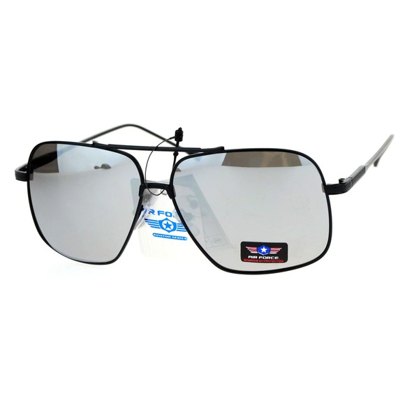 Air Force Sunglasses Retro Metal Square Aviators UV400 Black, Silver Mirror
