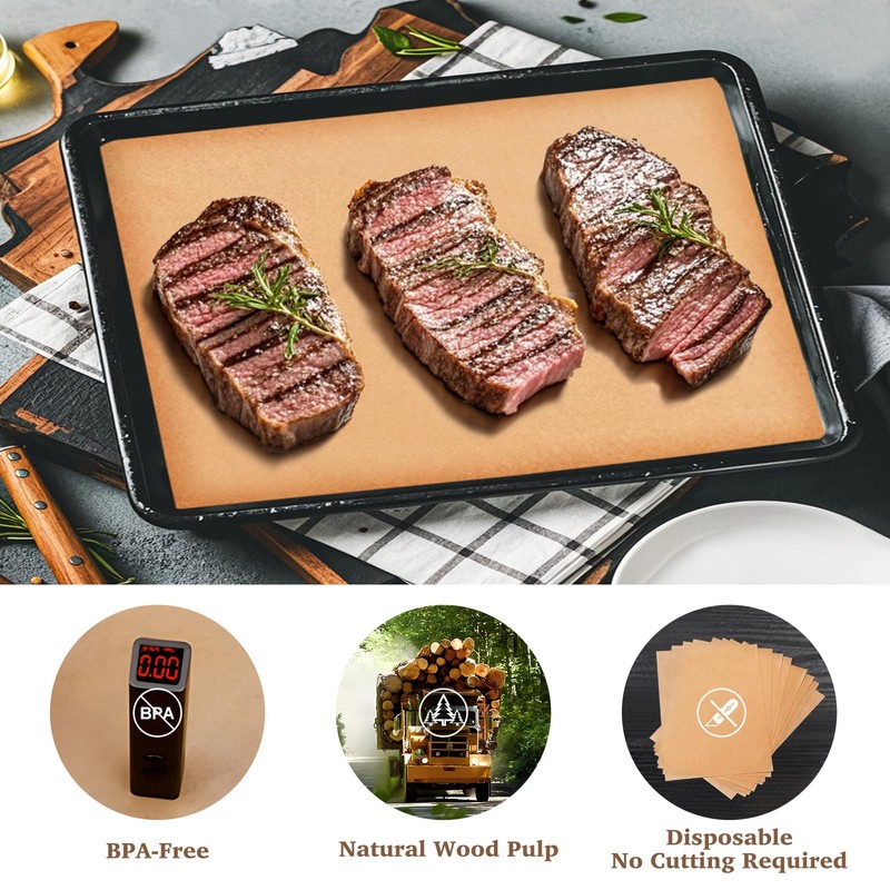 - Convenient & Time-Saving – With 120 pre-cut sheets, enjoy easy meal preparation and cleanup. Simply place the air fryer paper sheet in your air fryer basket, and say goodbye to stubborn grease and food residue.