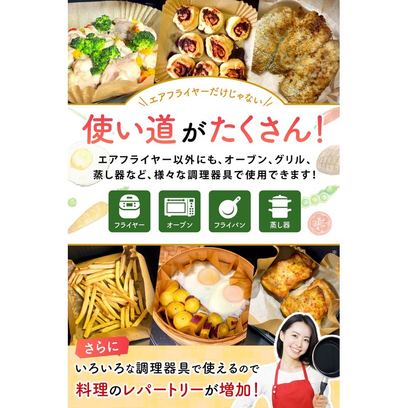 Air Fryer Sheet (Supervised by Culinary Researcher) Cooking Sheet, Air Fryer Paper, 100 Sheets, Food Sanitation Act Compliant, Heat Resistant Temperature 452°F (230°C), Oven Sheet, Steamer, Tempura