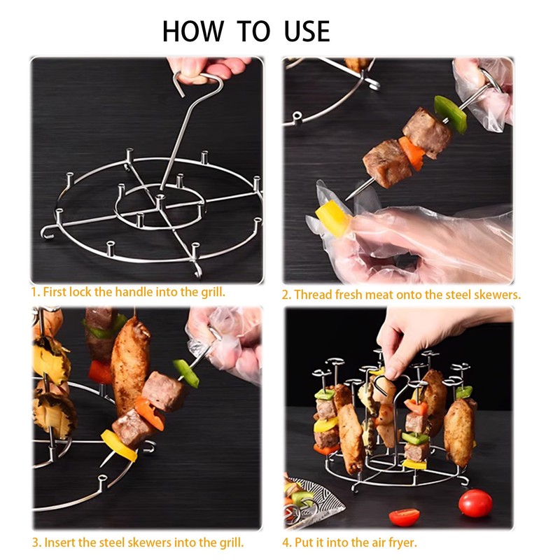 - Einfach zu Bedienen: Dieser edelstahl heißluftfritteuse spieße ist leicht zu montieren/demontieren. Er verfügt über einen praktischen griff in der mitte mit dem sie ihn bewegen können.bei nichtgebrauch einfach zerlegen und in einer küchenschublade oder einem schrank verstauen,nimmt nicht viel platz in anspruch