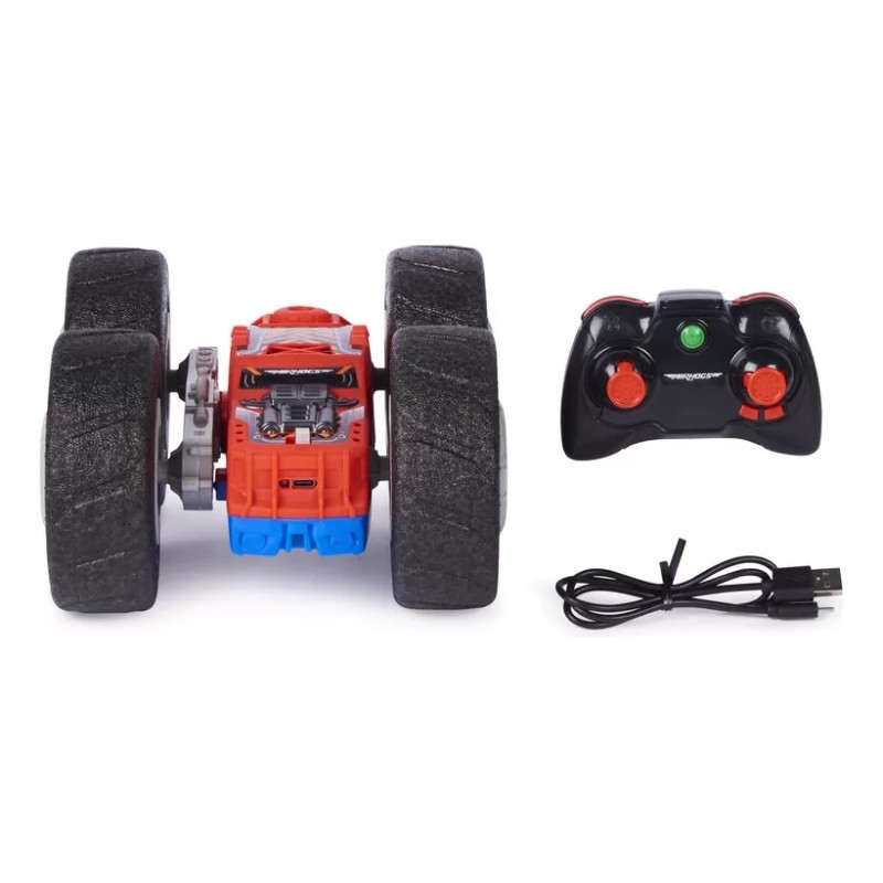 Incluye: 1 coche por control remoto Flippin’ Frenzy, 1 control, 1 cable de carga USB, 1 guía de instrucciones.