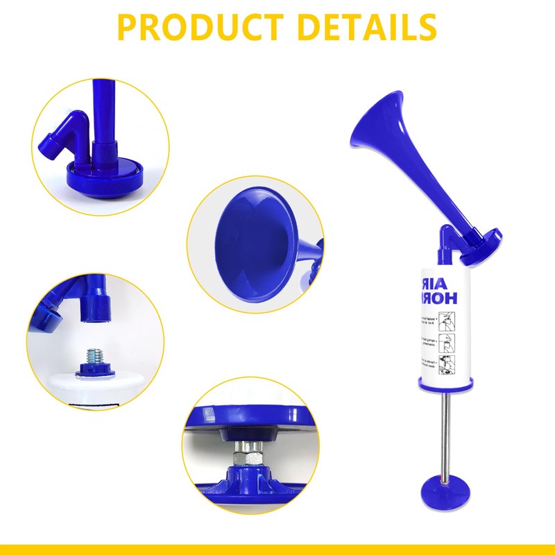 - Easy to Operate: Portable air horn is easy to operate, consists of two parts, the horn and the compression pump, which can be disassembled at any time, without additional inflation, easy to carry. When you use it, you only need to move the pump handle back and forth to make a loud and powerful sound.