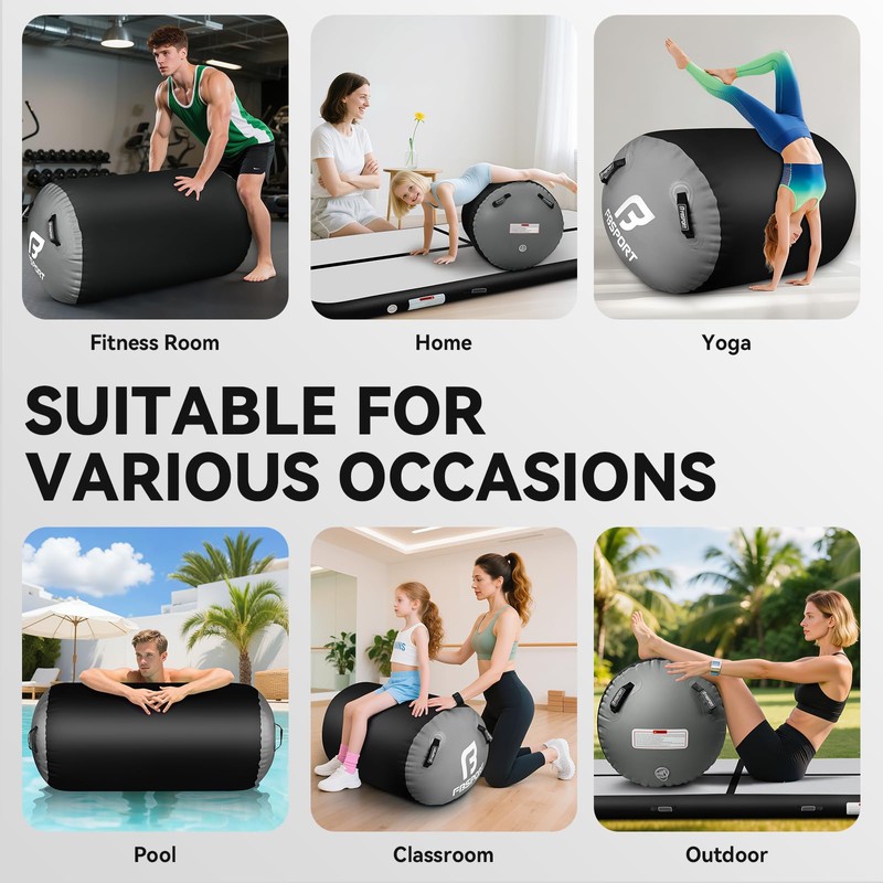 - Wide Application: This gymnastics air roller is widely applicable in different occasions, including fitness clubs, dance clubs, schools, gymnastic exercises, home entertainment, leisure centers, gymnasium, professional training, parks. Additionally, it is suitable for beaches, water areas, swimming pools, backyards, and lawns, and can also be used for cheerleading and home use. Please note to keep it away from open flames and sharp objects during use.