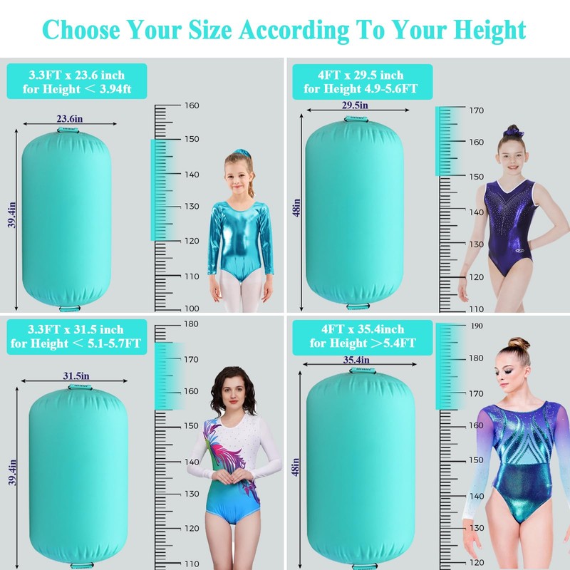 - SAFE& WATERPROOF - Compared with other foam octboyncygon, the gymnastics air roller can extend the using time and reduce the risk of injury and increases the repetitive frequency .Our gymnastics roller is soft enough to allow you jump higher and safe to land on. 100% waterproof material allows you to use our mat in your perfect Water Sport Activities or more fun!