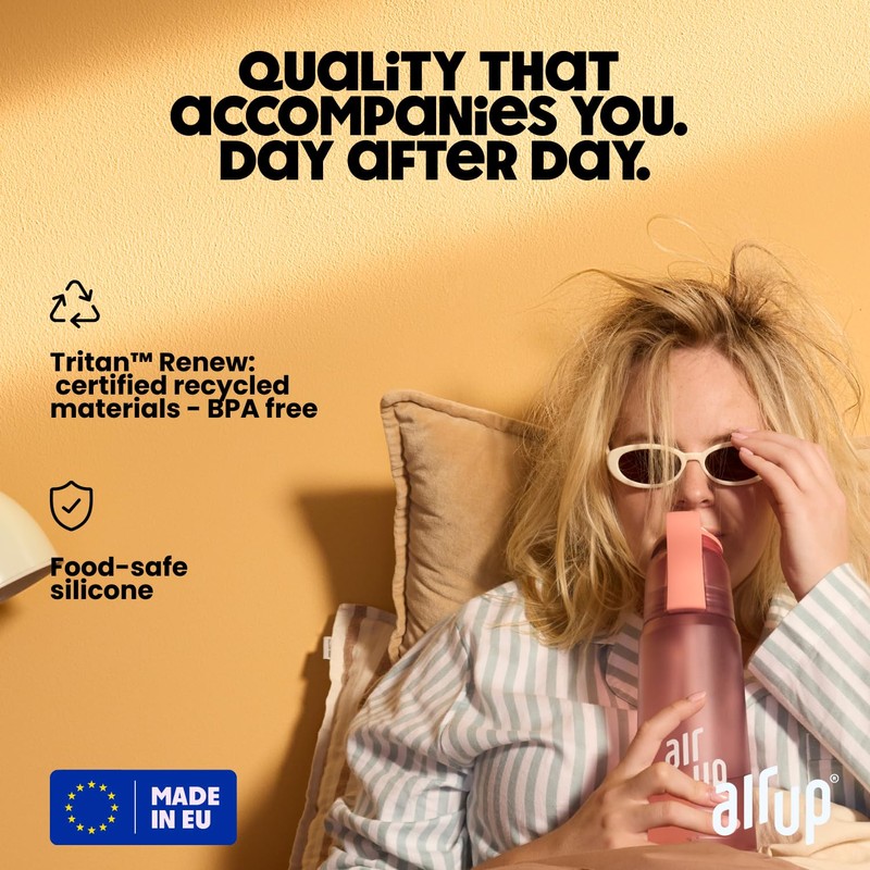 - RELIABLE AND SAFE - WITH AND WITHOUT CARBON ACID: The dishwasher-safe air up bottle made from food-safe silicone and BPA-free Tritan is easy to refill and can be closed tightly. The ideal companion for school, office, gym and when travelling.