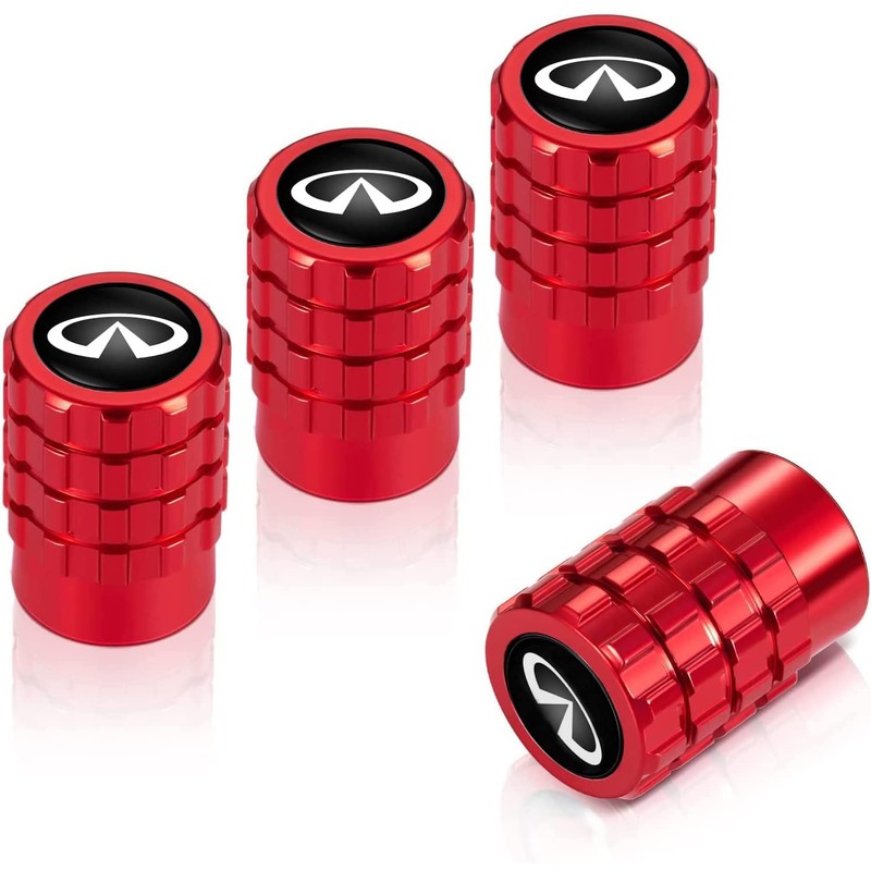 Air Valve Cap, Infiniti, High-Grade Alloy, for Cars and Motorcycles, Tire Valves, Set of 4, Infiniti, Red