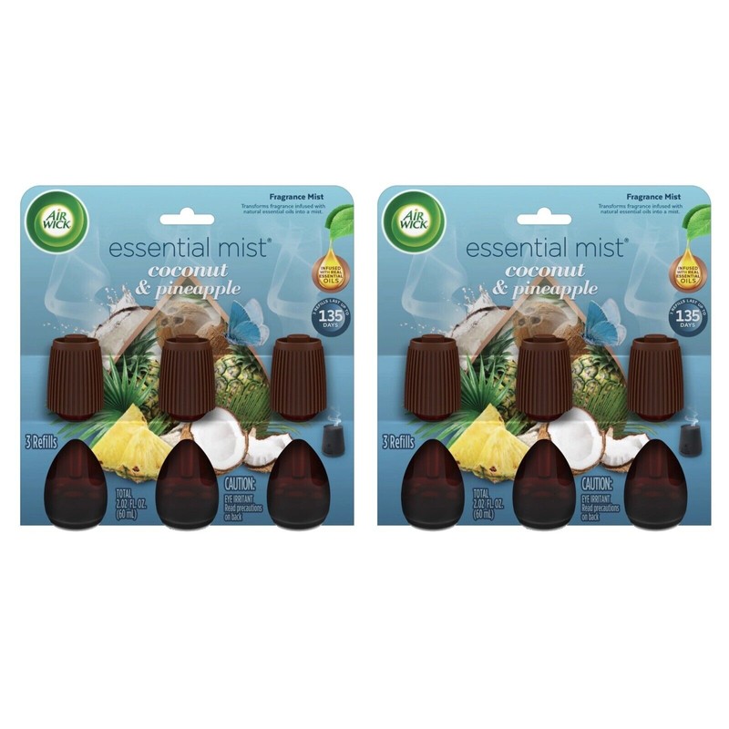 2 Air Wick Essential Mist Refill 3 Count Coconut And Pineapple Air Freshener . Condition is New. Shipped with USPS First Class.