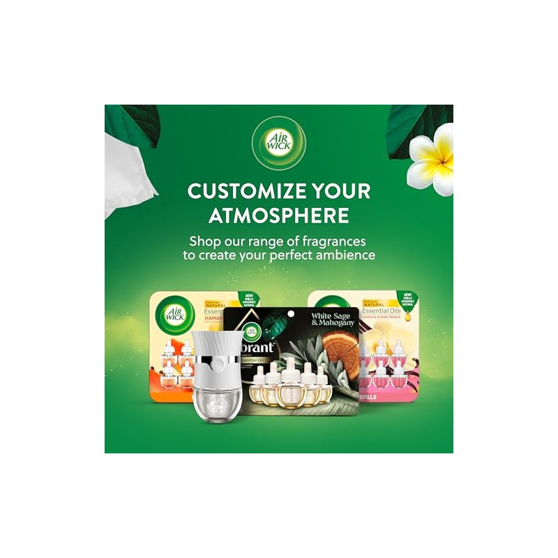 Enhance your homes scent with Air Wick Scented Oil Refills infused with % natural essential oils. Air Wick Scented Oil Refills release continuous fragrance for up to days (based on low setting) so your home smells welcoming. Our latest Air Wick scented oil warmer optimizes airflow for degree fragrance diffusion, reaching every corner of the room for a consistent fragrance experience. The Air Wick Scented Oil warmer also allows you to choose between fragrance settings for just the right amount of fragrance. It continuously diffuses and carefully blends fragrance throughout your home, office, or any space.