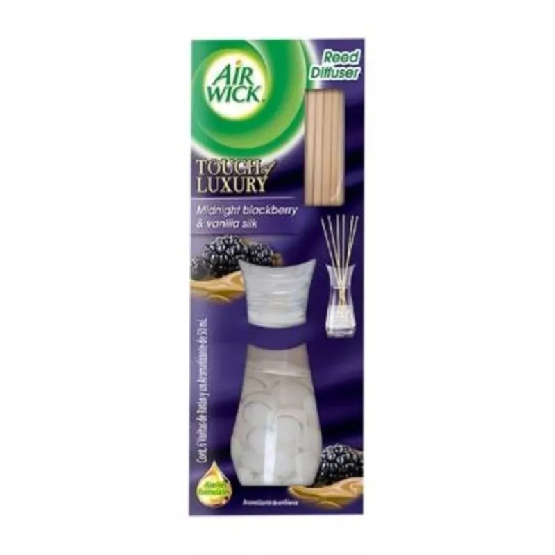 Disfruta de Air Wick® Reeds Diffuser que usa tallos de ratán naturales que liberan delicadamente fragancias magníficas de vainilla, y moras. Rodea tu hogar de notas dulces y acogedoras, que crearán un ambiente relajante y placentero. Reeds Diffuser es un aromatizante decorativo, y tiene una duración de hasta 4 semanas. Air Wick® es ideal para uso en la cocina, baño, sala y habitación.