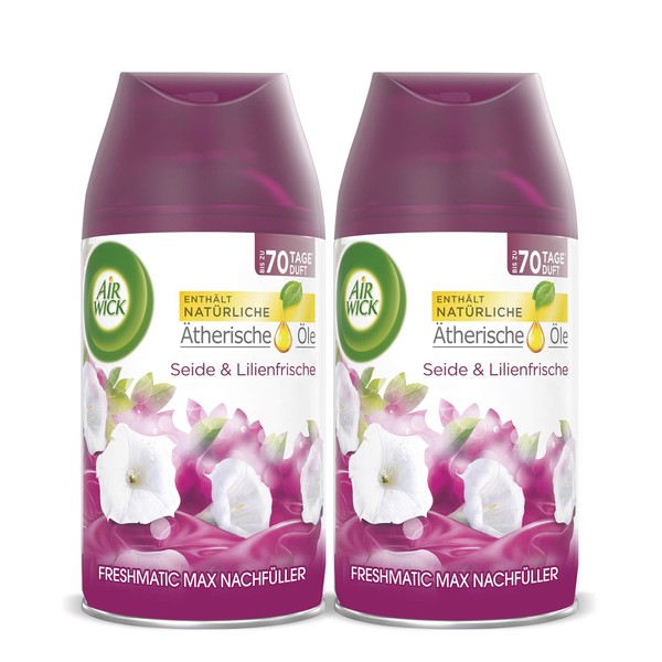 - Box contents: 2x 250 ml Air Wick Refill Room Spray for Air Wick Freshmatic Max / Scent: Silk and Lily Fresh / Compatible with most standard devices