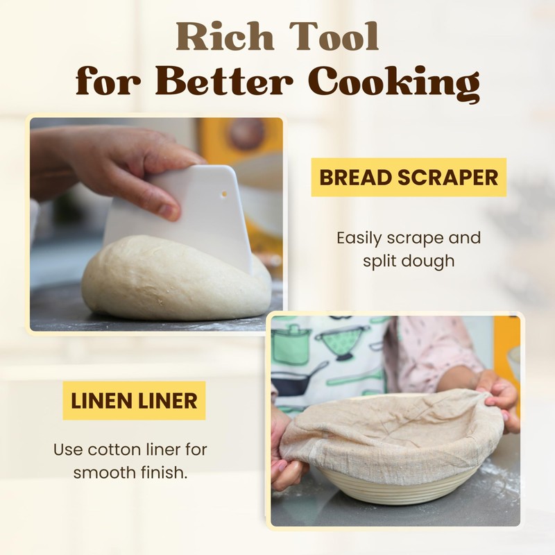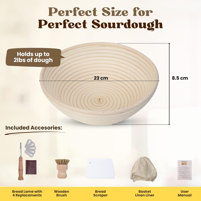 - INSTRUCTIONS INCLUDED - Our proving baskets include instructions on how to wash your banneton basket and two delicious receipts for getting started. Instructions to help ensure first time success in sourdough bread baking. Full bread making equipment.