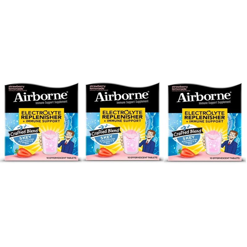 Airborne Electrolyte Replenisher Strawberry Lemon Tablets 10ct (3 Pack)