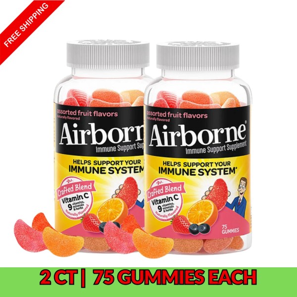 Airborne Immune System Booster Gummies – 2 Pack (750mg Vitamin C – 75ct Each)