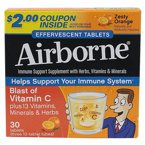 Airborne Zesty Orange Effervescent Tablets, 30 count - 1000mg of Vitamin C - Immune Support Supplement