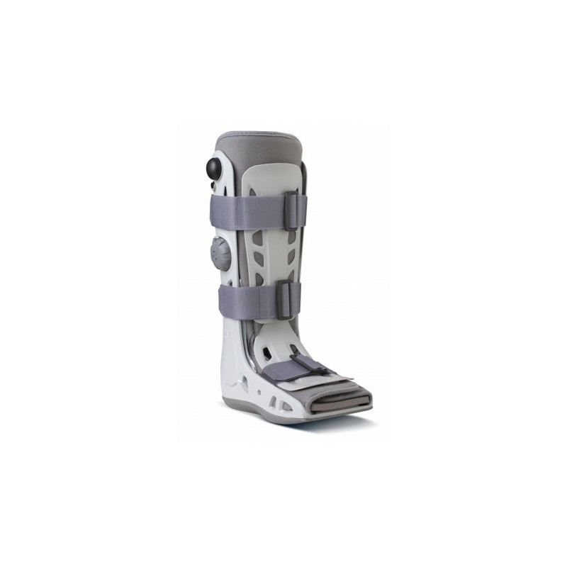 The next generation of the cost-effective Aircast foam pneumatic walking brace, the AirSelect Standard provides full-shell protection with two distal air cells for pneumatic support. Each AirSelect Standard has a low rocker sole for added comfort and ease of ambulation and a wider foot base with plenty of room for dressings without sacrificing comfort. The AirSelect Standard is ideal for stable foot and/or ankle fractures, severe ankle sprain and post- operative use.