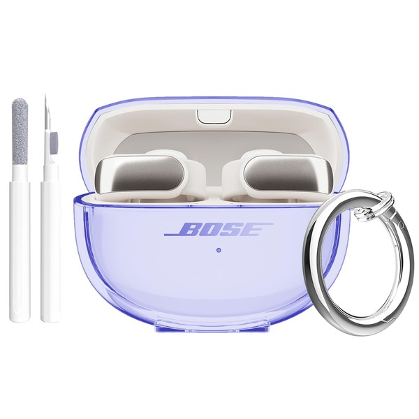 Aircawin for Bose Ultra Open Earbuds Case Clear 2024,Full Protective Shockproof Soft Transparent TPU Cover for Bose Open Ear Wireless Earbud Headphone Accessories with Carabiner& Cleaning Pen-Purple