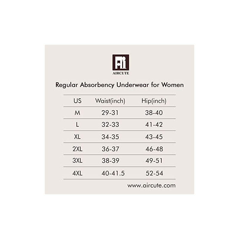 - REGULAR UNDERWEAR LOOK & COMFORTABLE: Look as regular underwear from outside, enables you to regain confidence and comfort in all aspects of daily life. AIRCUTE Soft, Breathable underwear gives you leak-free protection for daytime and overnight