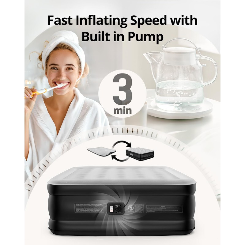 Airefina Air Mattress Queen with Built in Pump, 18 Raised Comfort Blow Up Mat...