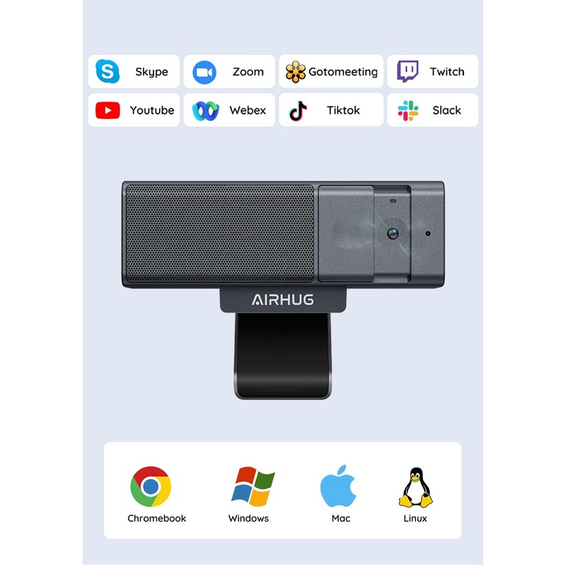 - EASY TO SET UP - The AIRHUG 16 webcam comes with a microphone and speaker to ensure privacy and security. Easily connect your PC, laptop and more via USB cable, no additional drivers needed. Compatible with operating systems such as Windows 7, 8, 10, 11, and Mac OS systems. Package includes AIRHUG 16 all-in-one camera, Type C core cable, user manual, warranty card. AIURHUG 16 is the perfect solution for video conferencing needs
