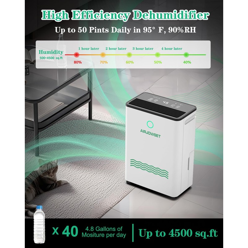 AIRJOWSET Dehumidifier 50 Pints 4500 Sq.Ft