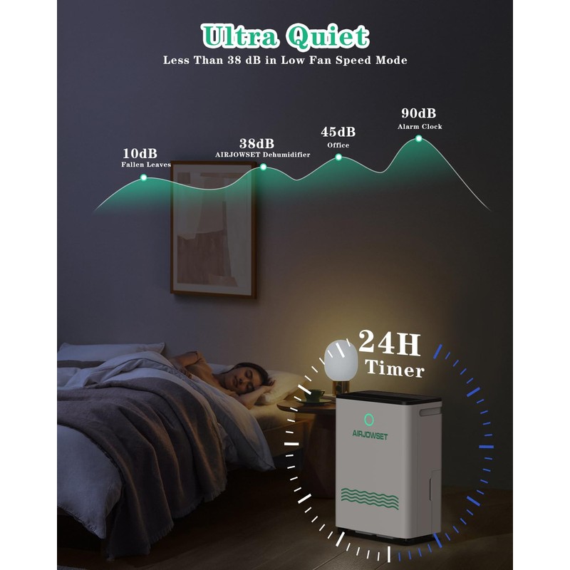 • 【Quiet Operation & 24-Hour Timer】This dehumidifier is designed with cutting-edge noise reduction technology(38dB), won't disturb your daily activities or sleep. Customize your work time by setting the timer for 1-24 hours and enjoy a consistently dry and comfortable space.