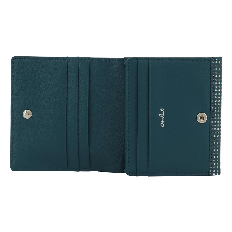 - Specifications: Snap button closure Interior: Bill compartment x 2, Box-shaped coin purse x 1, Card pocket x 4, Free pocket x 1, Back: Free pocket x 1