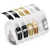 Airmall Embossing Device Labels Replacement for Dymo Omega Label Tape 9 mm Embossing Tape Compatible with Dymo Omega and Junior Embossing Device, 5 Embossing Tapes, White on Black/Gold/Champagne