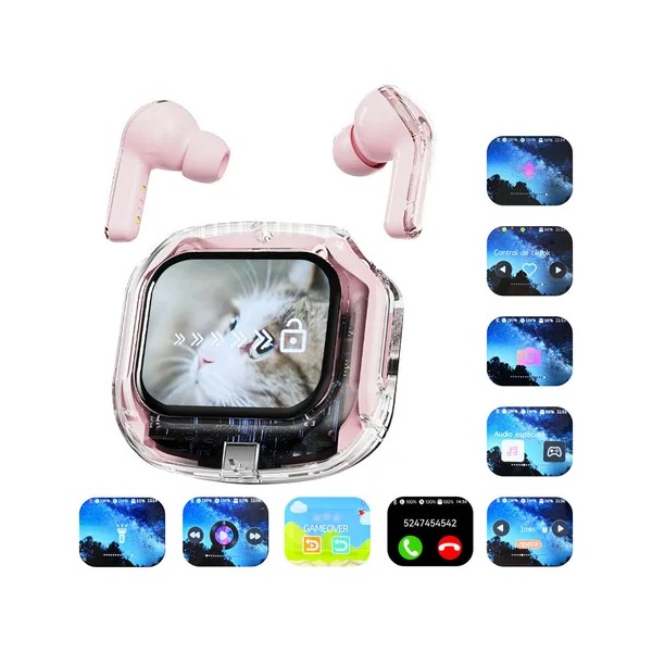 Airmax Audífonos Inalámbricos Bluetooth 5.4 Tws Con Pantalla Táctil, Control De Cámara, Tiktok, Asistente De Voz Y Temporizador, Rosa