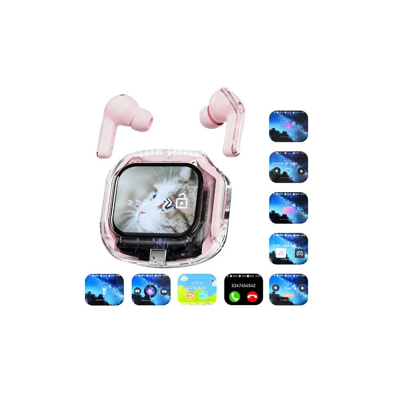 Airmax Audífonos Inalámbricos Bluetooth 5.4 Tws Con Pantalla Táctil, Control De Cámara, Tiktok, Asistente De Voz Y Temporizador, Rosa