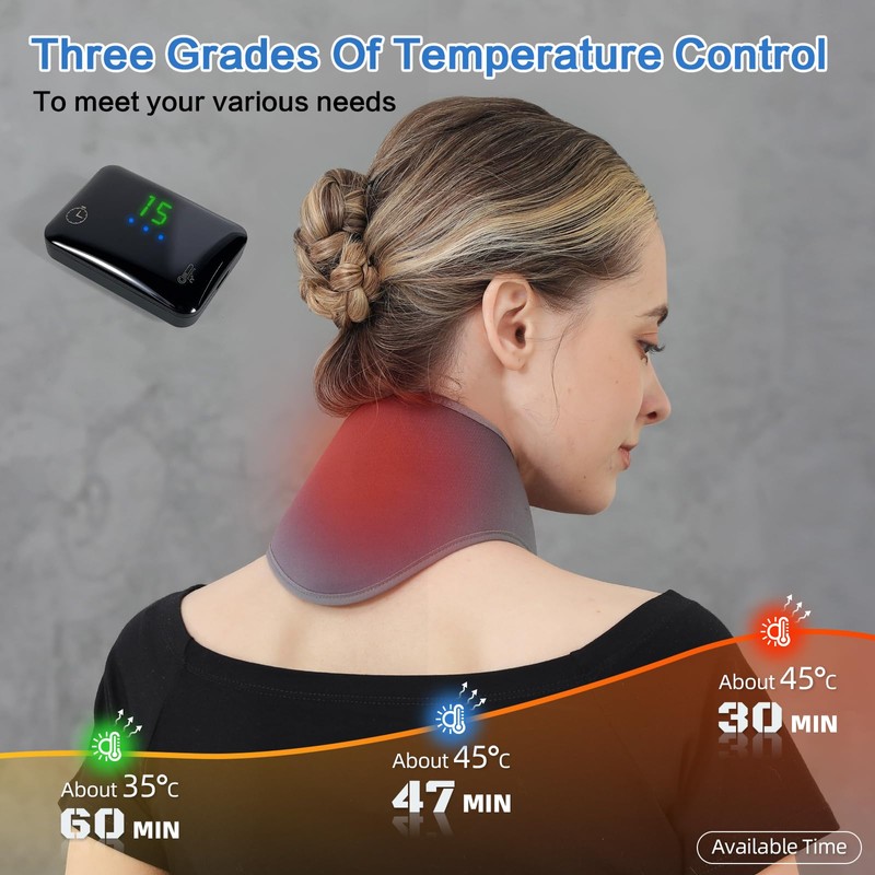 AIROKA Neck Heating Pad Massage for Neck Pain Relief, Soft Neck Warmer for Soreness and Stiffness, Made of Nano Heating Fiber, 3-Segment Heat, USB Heated Neck Wrap Strap