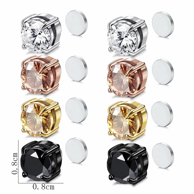 Airokiy 4 Pairs Magnetic Earrings Cubic Zirconia Magnetic Ear Clips Without Pierced Ears Stainless Steel Clip Earrings for Men Women 6/8 mm Clip Earrings Fashion Jewellery Set, Cubic Zirconia, Zircon
