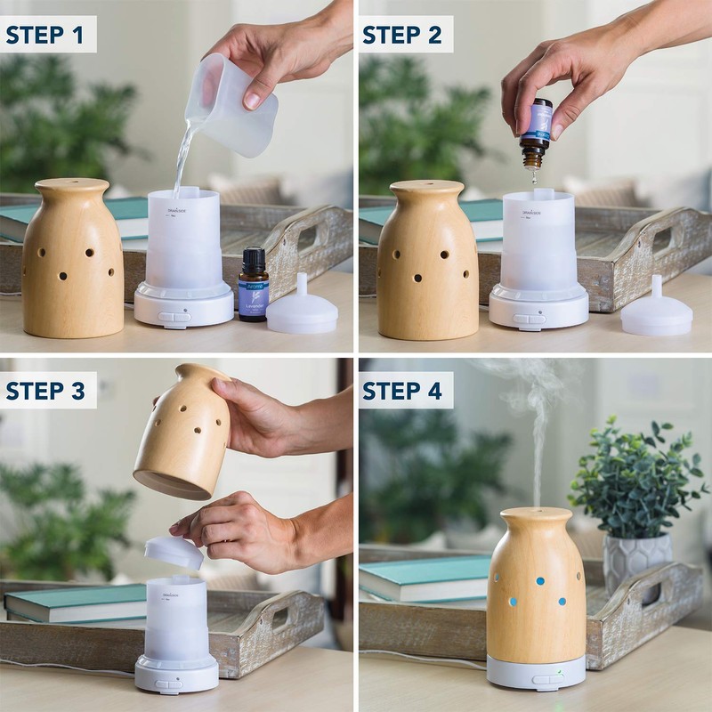 - QUIET HUMIDIFYING: Whisper quiet ultrasonic technology causes mist to humidify with your added essential oil of choice. Freshen the air in your home with one of our Airome Therepeutic Grade Essential Oils.