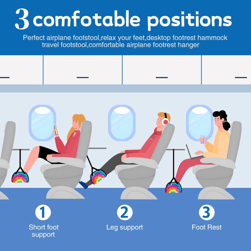 Adjustable Airplane Foot Hammock: The strap of airplane foot hammock can be adjusted in length, and you only need to move the buckle to adjust the length of the foot hammock strap.Travelers of any height can find comfort with our foot rest for airplane travel.