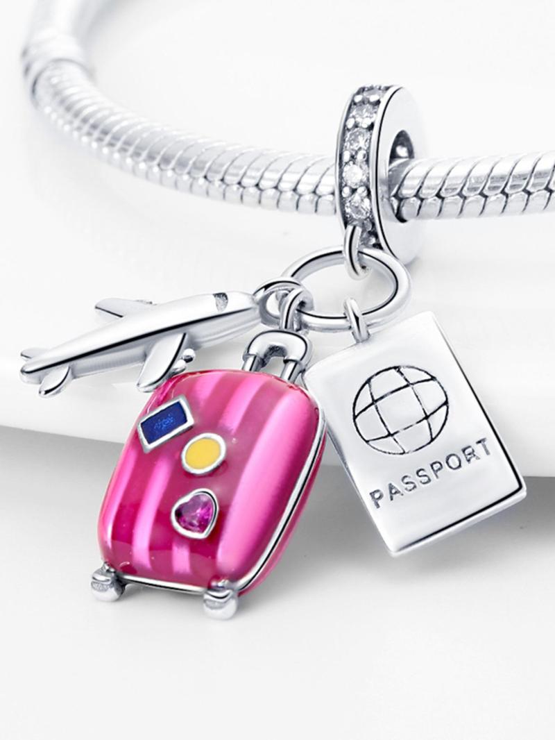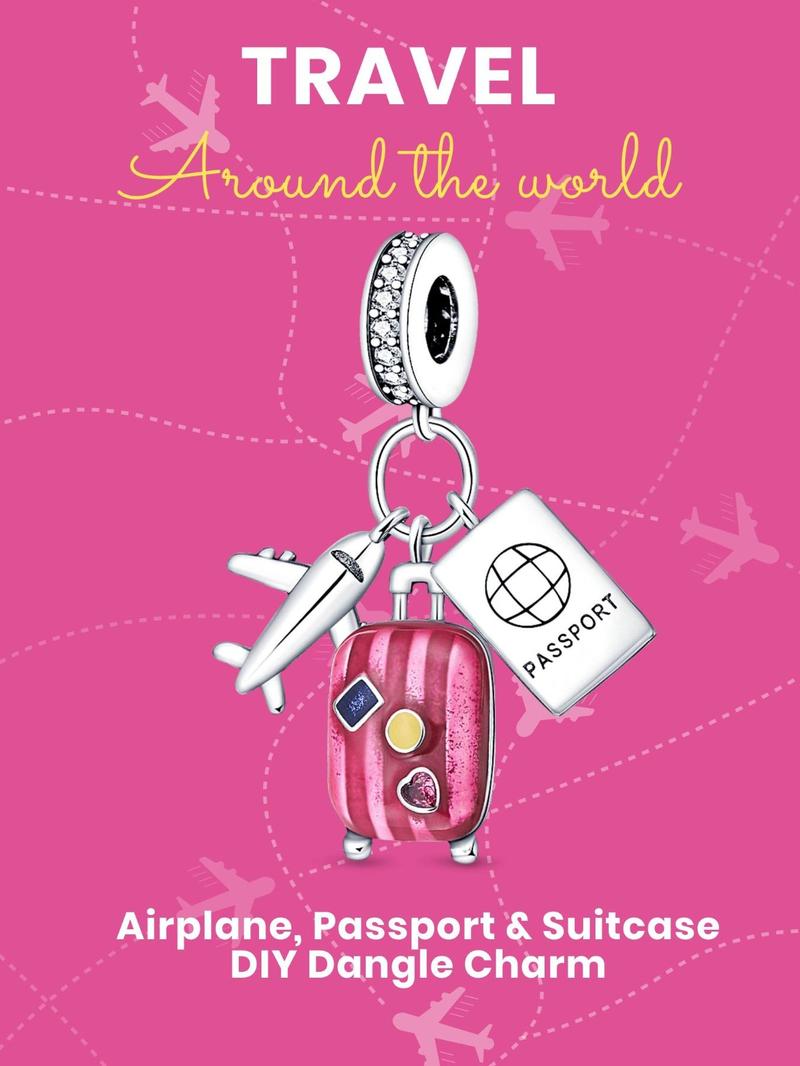 Airplane, Passport & Suitcase Design Dangle Charm, Fashionable Fiy Jewelry for Women & Men, Trendy All-match & Exquisite Diy Jewelry for Birthday Gift