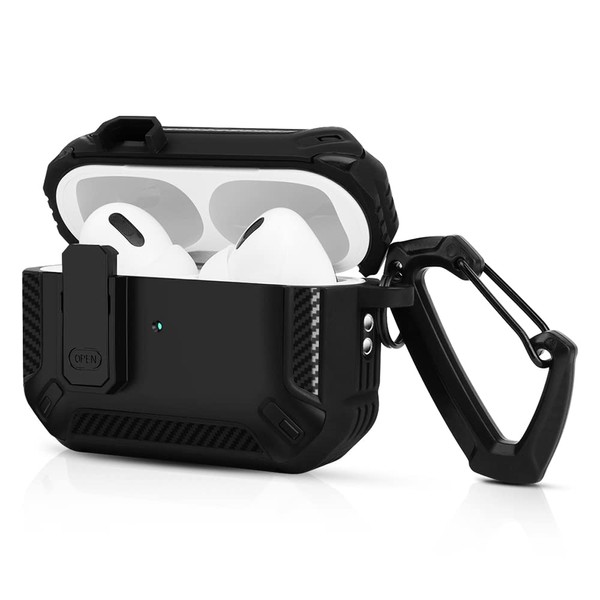 AirPods Pro 2 Case 2022 with Locking Lid and Keychain Hook, Dust and Shockproof, Durable Case (Black)