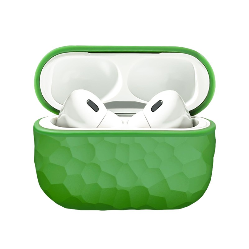 Airpods Pro 2 Case Imitation Hammered Texture Design Airpods Pro 2nd Generation Full Protective Silicone Case Military Grade Shockproof Supports Wireless Charging (Green)