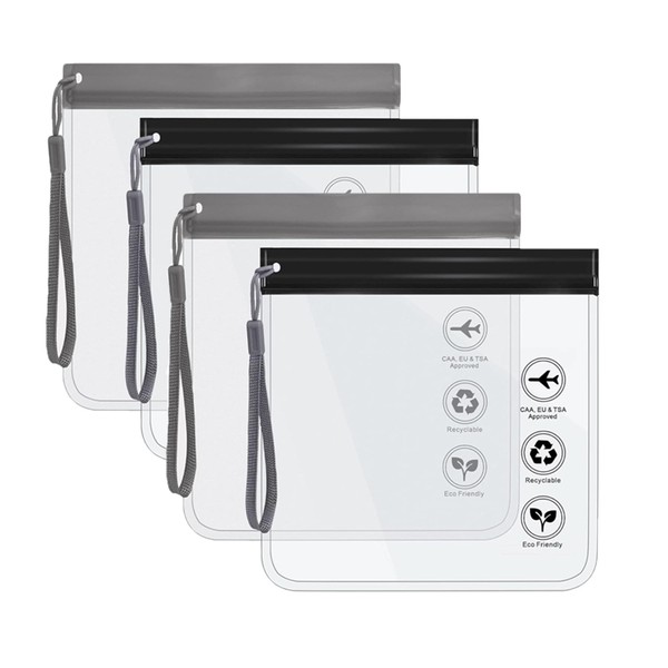 Airport Approved Transparent Toiletry Bag, Toiletry Bag with Handle with Zip, Leak-Proof, Clear Travel Cosmetic Bag, Black and Grey, Pack of 4, 20 x 20 cm, Transparent, black, grey, Unisex