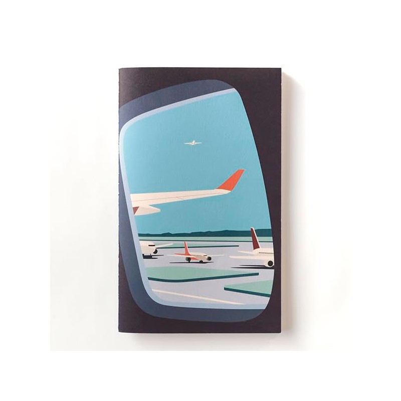 The design named "Standby" is the main action of an airplane on a runway waiting to take off. After boarding, the plane is seeing through the window... It expresses a sense of elevation after boarding. Draws from the front to the back cover with a single drawing, and when you open the cover to create a spacious scenery that will jump into your eyes.